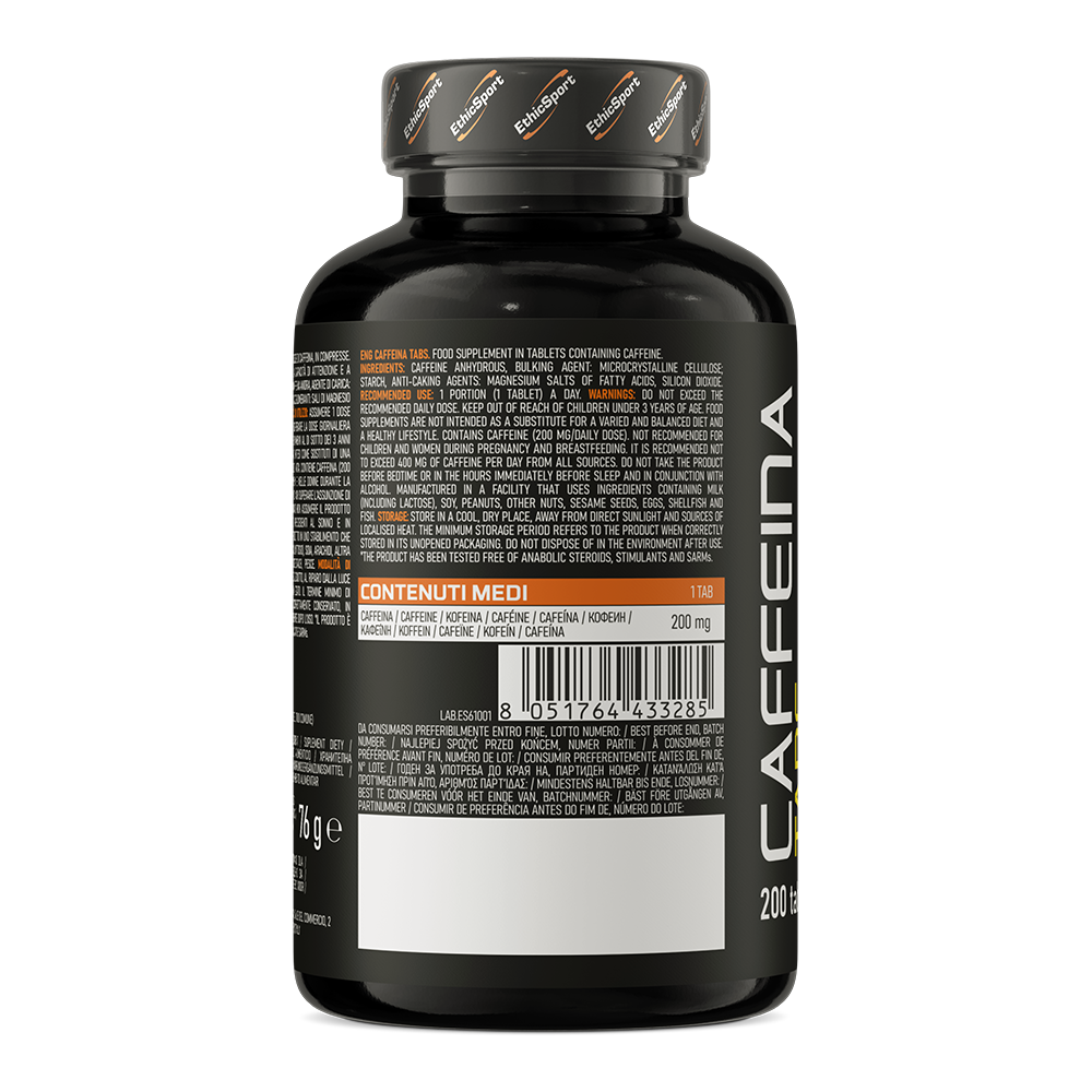 EthicSport Caffeina to wysokiej jakości suplement diety zawierający kofeinę bez dodatku cukru. To preparat o czystym, prostym składzie dostępny w postaci łatwych do połknięcia tabletek, opracowany z myślą o sportowcach uprawiających intensywne i długotrwałe wysiłki fizyczne, którym zależy na pobudzeniu organizmu i uzupełnieniu codziennej diety w wartościowy związek.