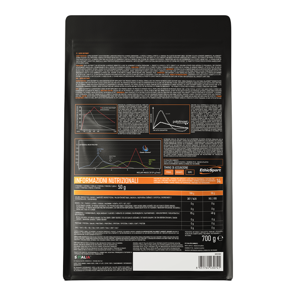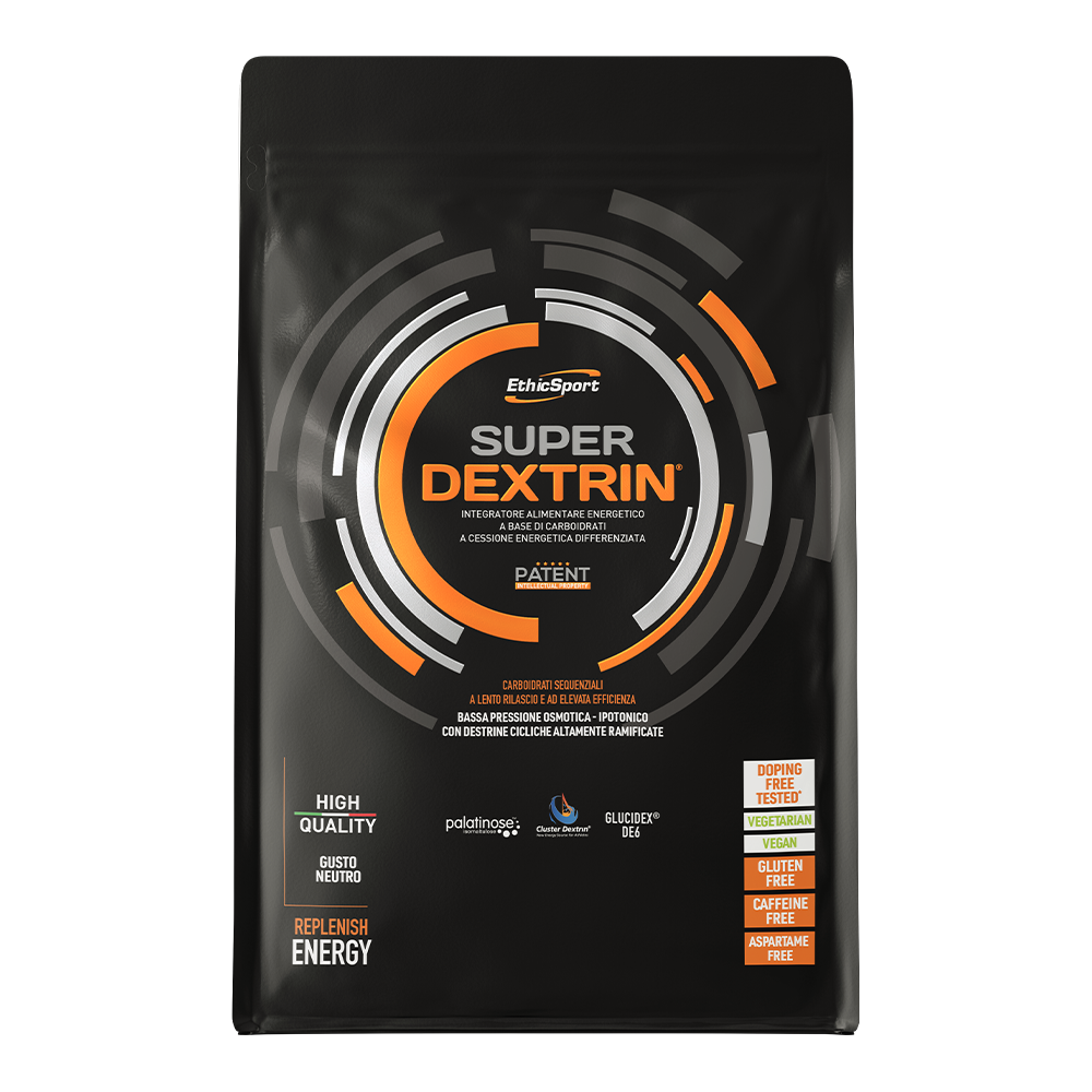 EthicSport Super Dextrin to wysokiej jakości suplement diety, który zawiera opatentowaną mieszankę na bazie węglowodanów, stanowiąc źródło cyklicznych dekstryn o silnie rozgałęzionych łańcuchach, izomaltulozy i maltodekstryn o różnej równoważności dekstrozy. To preparat dostępny w wygodnej w użyciu formie proszku. To produkt stworzony z myślą o sportowcach wykonujących wymagające i długotrwałe treningi.
